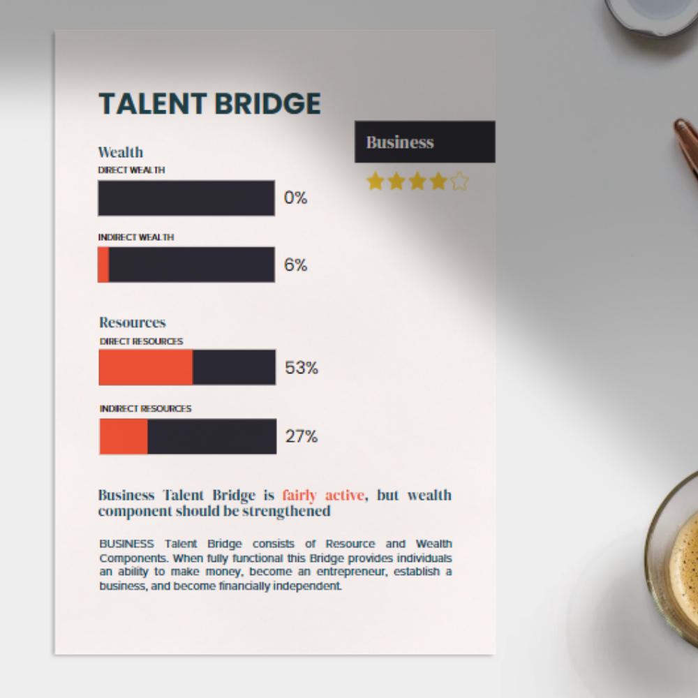 - Uncover your dynamic talents in areas such as creativity, business, leadership, influence, and dominance