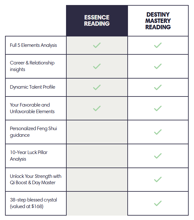 - Full Five Elements Analysis – Discover your element strengths, weaknesses, and energetic imbalances