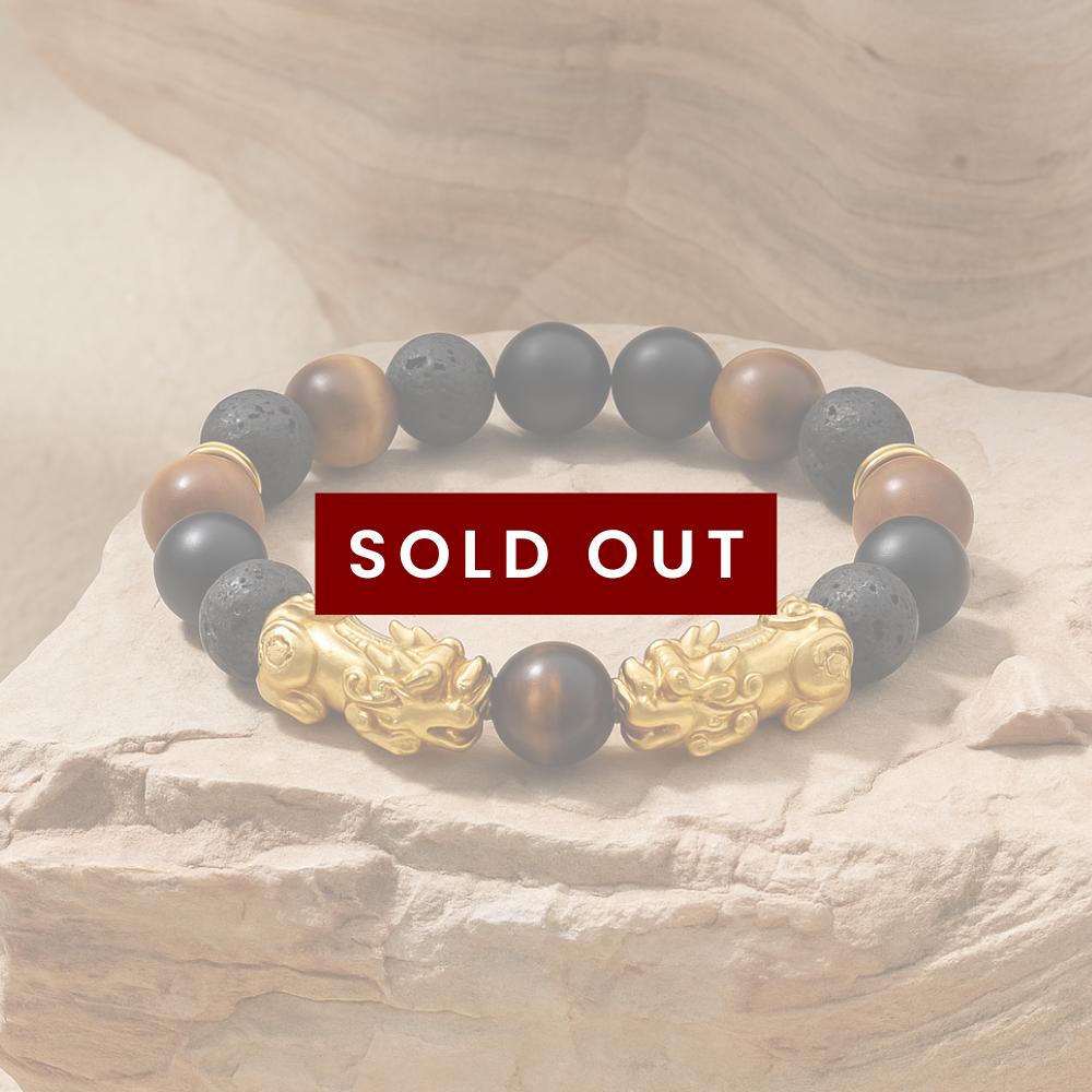 The Benefactor is a powerful Pixiu bracelet designed for those who build, lead, and elevate others while remaining spiritually fortified. Featuring a fusion of black onyx, lava stone, tiger’s eye, and sandalwood, it channels grounded strength, strategic clarity, and protective energy. Its twin golden Pixiu guard not only your wealth—but your purpose. This is the bracelet for those chosen to be a blessing in other people’s stories.