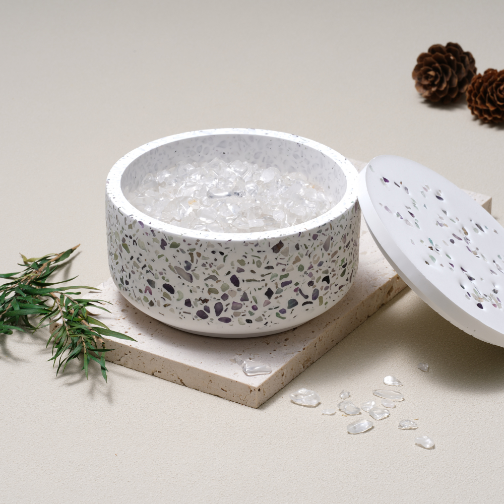 - Gently place your Feng Shui item into the bowl, allowing the Celestial Essence Crystals to absorb stagnant energy.