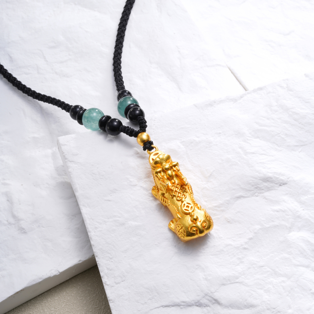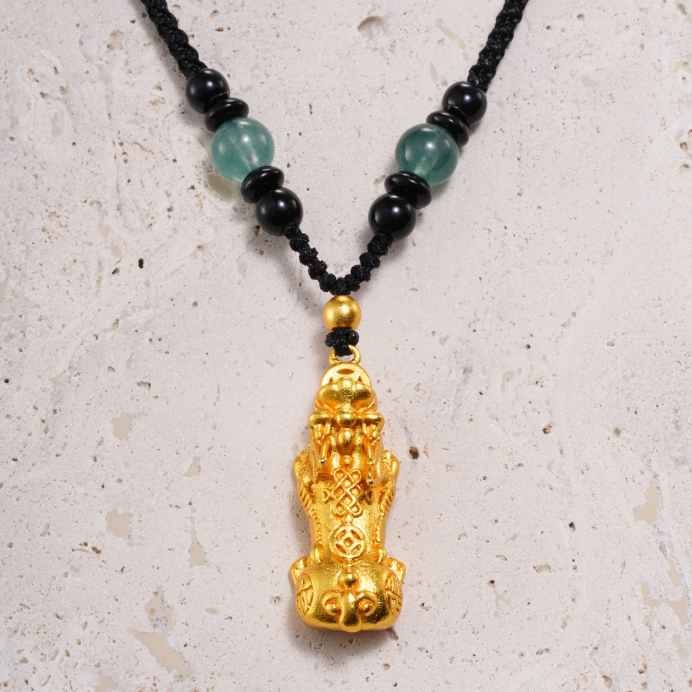Prestige Dominion is a powerfully symbolic Pixiu necklace, designed to anchor and attract all five classical Chinese blessings. With black and green Feng Shui stones to balance energy and a gold Pixiu to call in prosperity and protect it, this piece is ideal for those who lead businesses, households, or personal legacies. It is more than a charm—it is your divine right, worn close to the heart.