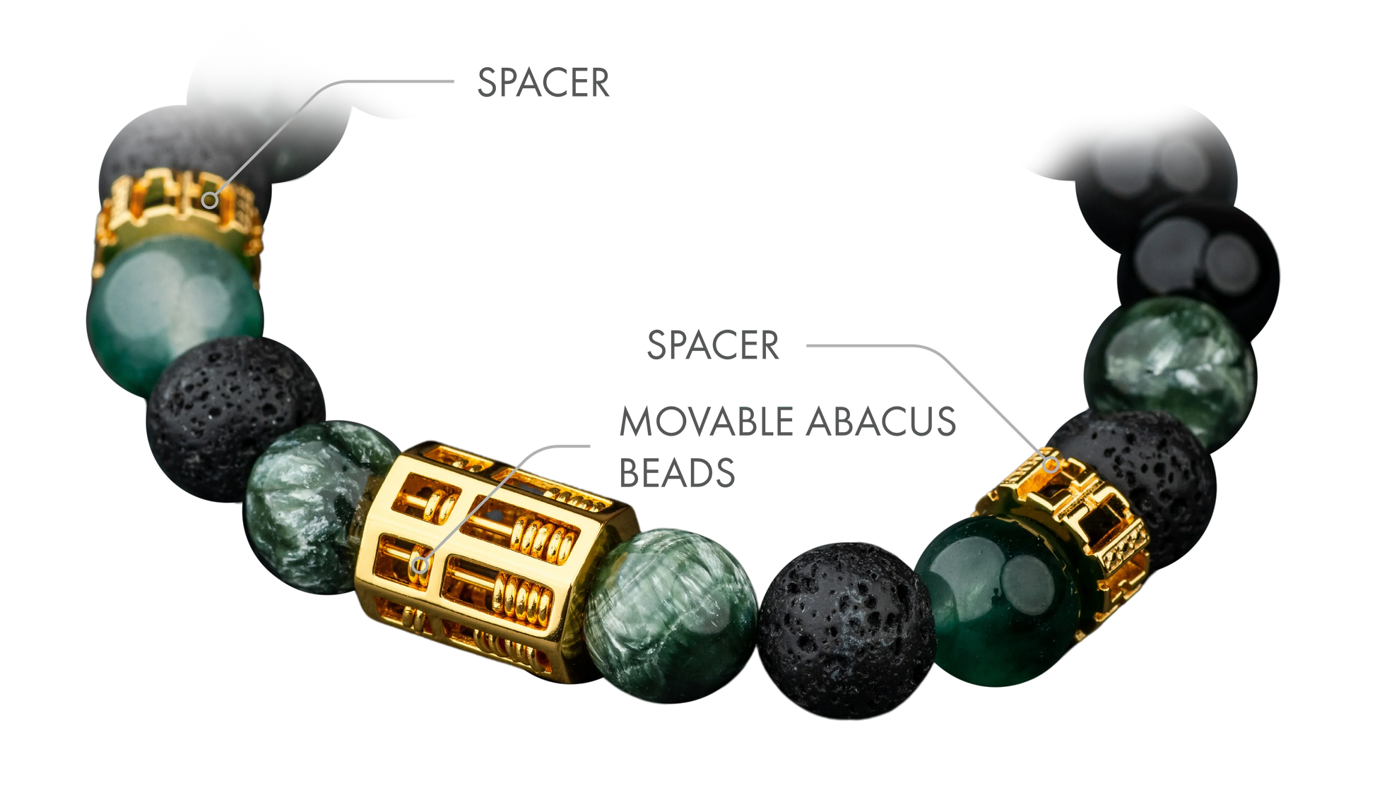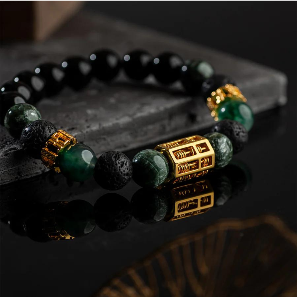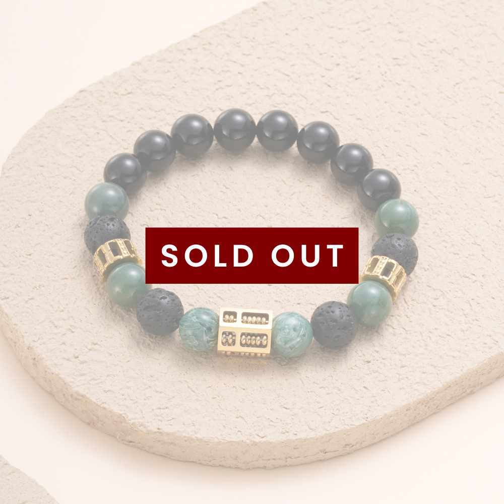 Prestige Axis blends grounding onyx, wealth-attracting jade, and volcanic stone with a central golden abacus charm—symbolizing measured wealth and energetic equilibrium. It’s the ideal piece for entrepreneurs, leaders, and strategic thinkers who value resilience as much as prosperity. This bracelet does not tilt—it holds you steady in abundance, shielding your progress while guiding your next move.